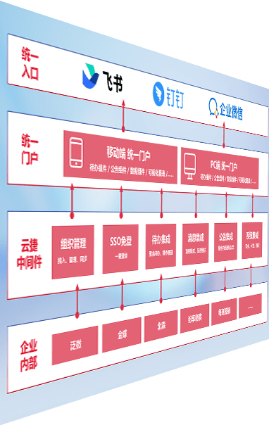 对协作平台提供支持服务,,支持企业应用与协作平台对接,,包含组织同步、、、消息集成、、、待办集成等。。。。支持目前主流的协作平台:钉钉、、企微和飞书。。。